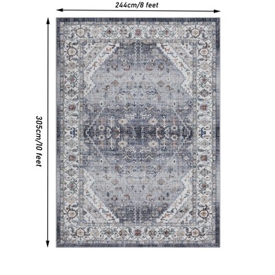 Fulvari Area Rugs Traditional Floral Print Indoor Mat with Non-Slip Backing,Machine Washable Low Pile Floor Carpet for Bedroom Gray,8'x10'