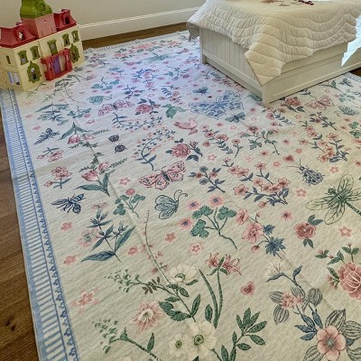 Super soft rug and colors are true to the photos. I love the sage green and pink version in our master bedroom!