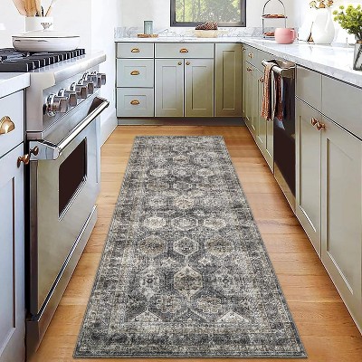 Fulvari Area Rugs with Vintage Oriental Printed Distressed Design Washable Thin Low Pile Rugs for Living Room Indoor Brown 9 * 12Ft