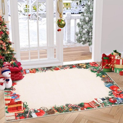 Fulvari Christmas Rugs Snowy Tree Print Washed Cotton Reversible Foldable Floor Mat Holiday Home Decor Rug Green 4x6