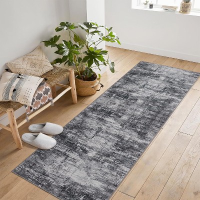 Fulvari Rug, Modern Washable Non-Slip Low Pile Area Rug for Bedroom Entryway,Foldable Floral Print Pattern Carpet Retro Home Decor - Black,2*6ft