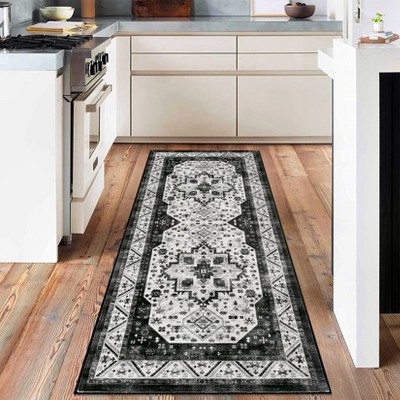 Fulvari Runner 2'x6' Floral Rug Washable Thin Low Pile Suit for Entryway Bedside Bedroom Office Kids Room Non Slip Carpet Black