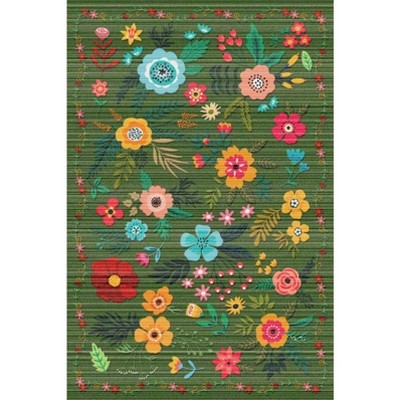 Fulvari Vintage Area Rug,Washable Boho Rugs for Living Room Low Pile Non-Slip Flower Birds Rug,Indoor Carpet for Nursery Dining Room Green 10x13