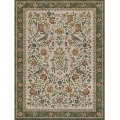 Fulvari Vintage Floral Area Rug, Machine Washable Botanical Bird Rug Non Slip Soft Low Pile Carpet for Living Room, Bedroom,Garden Green 8x10