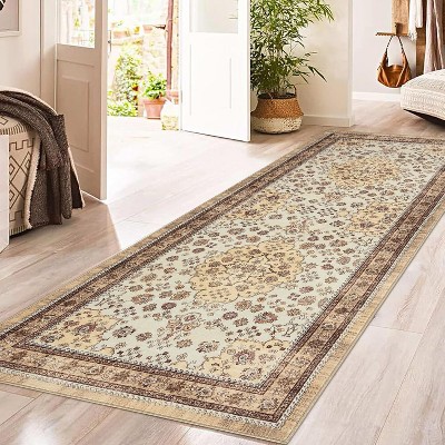 Fulvari Washable Area Rug, Non Slip Low Pile Soft Accent Indoor Floor Carpet for Dining Room Office Entryway Kitchen,Brown tone,2'x6'