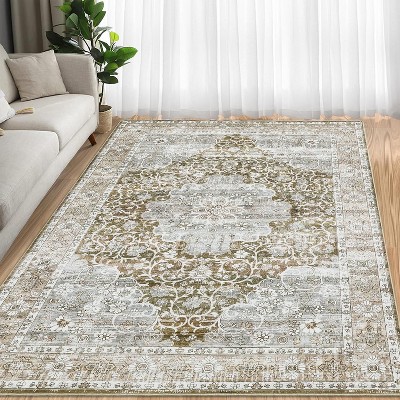Fulvari Washable Area Rug Vintage Foldable Thin Rug Soft Low-Pile Non-Slip Stain Resistant Floor Indoor Outdoor Carpet Camel 8'x10'