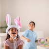 Inflatable Bunny Ears Ring Toss Game. What fun. After gobbling down candy and hunting for eggs Get kids active on Easter with this vinyl Inflate Bunny Ears Ring Toss Game. Watch in delight as kids try to toss all four 7 1/2" rings around the bunny ears of the included 16" hat. Played competitively or cooperatively this game is just plain fun. Hat ties on your head with two 16" straps.