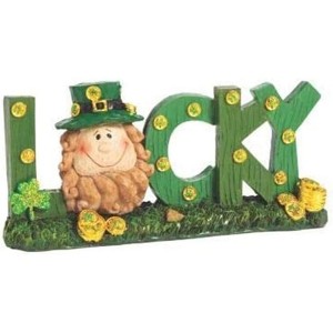 Treat your home to a little luck o’ the Irish. Crafted to show a smiling leprechaun among gold coins and shamrocks, this sign is a must-have for St. Patrick’s Day décor. Home accents like this can be displayed easily on mantels, end tables or even as centerpieces. With this in your living space, your home might just be the luckiest one on the block! Resin. Hand Painted, slight variations will occur.