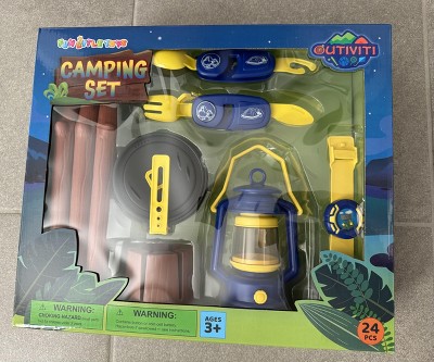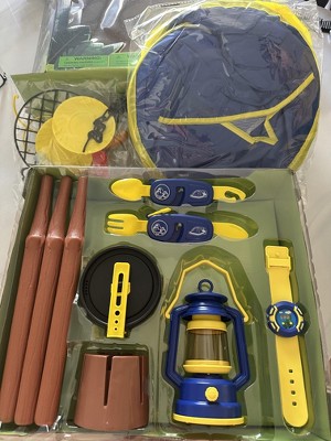 Ready for camping my little advanturer? This set offers a full camping experience with a pop-up tent, play food, utensils, and more, fostering imaginative play and outdoor exploration. Get this camping play set for like real experience, set up your tent and camp fire, turn on the oil lantern and enjoy a quality meal with friends. Keep your extra supplies in the backpack. Help kids to develop interest in outdoor activities. The lightweight, collapsible tent is effortlessly set up anywhere, indoors or outdoors, for on-the-go adventure and play. Perfect for a mock or real camping activities with family and friends.