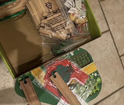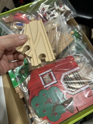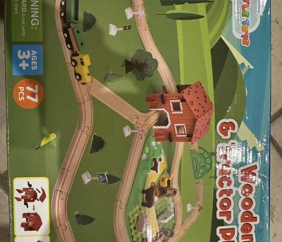 Fun Little Toys 77PCS Magnetic Wooden Train Set – Farm Theme Tracks, Compatible with Major Brands, Educational Toys for Kids