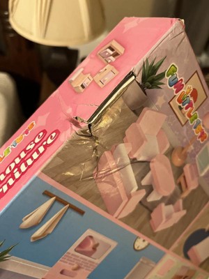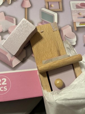 Fun Little Toys 22Pcs Wooden Dollhouse Furniture Set, Pink Playset with Accessories, Pretend Play Toy for Kids Ages 3+