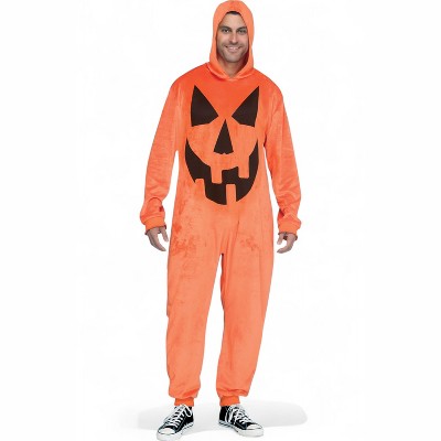 Get ready for fall vibes with this Halloween-y E-Z Pumpkin Costume for adults. This bright orange hooded jumpsuit will instantly turn you into a fun jack-o-lantern so that you can join in on any spooky festivities. Whether you're taking your kids out trick-or-treating or hosting your own haunted house party at home, this comfortable outfit will ensure a good time is had by all!