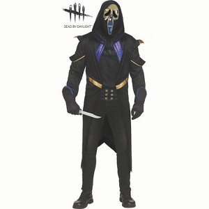 • TRANSFORM INTO CHILLING CHARACTERS: Plunge headlong into the world of your favorite eerie movies, TV shows, and video games by bringing their spine-chilling characters to life through our diverse range of costumes.br • ATTEND THEME PARTIES: Show off your creative side by wearing adult costumes to theme parties, whether it's a decade-themed event, a superhero gathering, or a fairy tale extravaganza, allowing you to fully participate in the festivities.br • FRIGHTEN AND DELIGHT TRICK-OR-TREATERS: Make trick-or-treating unforgettable for the neighborhood kids with costumes that add a dash of delightful dread to their sweet-treat-filled evening.br • CREATE GROUP OR COUPLE COSTUMES: Coordinate costumes with friends or your significant other to create fun and memorable group or couple costumes, showcasing your bond and enhancing your Halloween experience together.br br Product Description:br In the highly popular video game, Dead by Daylight, you can stalk, slash, and sacrifice your prey as a monstrous Killer. Our Dead By Daylight Adult Costume features a dark hooded coat with purple and golden accents, a black vest front with an attached jabot, a wide belt, gloves with purple trimmed cuffs, and a golden Ghost Face® character mask. Pants are not included. Adult standard fits up to 6 ft, 200 lbs. © 2015-2024 and BEHAVIOUR, DEAD BY DAYLIGHT and other related trademarks and logos belong to Behaviour Interactive Inc. All rights reserved.