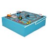 The Pop-it-Up Garage is the place to play with your diecast cars. It also doubles as a storage toy box for your cars and accessories. One box for both playing and storage. Printed polypropylene street graphics with cardboard inside. Quick and easy to assemble and foldable for takeaway. Assembled size is 19.7 x 19.7 x 6". Item sold is play storage box only. Any other items pictured are not included.