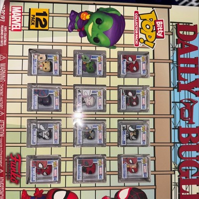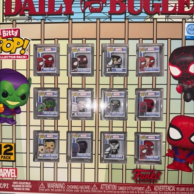The world of POP! is getting bigger—and smaller—with Bitty POP! collectibles! Expand your Marvel Spider-Man collection with this Collector Pack featuring Daily Bugle-themed packaging! This exclusive 12-pack includes Bitty POP! Spider-Man – First Appearance, Bitty POP! Miles Morales, Bitty POP! Venom, Bitty POP! Peter Parker/Spider-Man, Bitty POP! Green Goblin, Bitty POP! Ghost-Spider, Bitty POP! Anti-Venom, Bitty POP! Superior Spider-Man, Bitty POP! J. Jonah Jameson, Bitty POP! Spider-Man 2099, Bitty POP! She-Venom, and Bitty POP! Spider-Man. Bitty POP! collectibles are packaged in hard acrylic cases with detachable bottom lids. Detachable bottom lids double as acrylic bases, to which the Bitty POP! collectibles are adhered. Vinyl collectibles are approximately 0.9 in (2.3 cm) tall. Find more Funko products at Target.