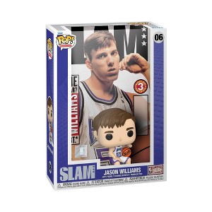 May of 2005, SLAM featured Jason Williams wearing his Sacramento Kings jersey on the magazine's cover. This rare cover was one of three versions featuring prospective receivers of the title Rookie of the Year. Commemorate an iconic sports magazine cover for your NBA collection with the Pop! Magazine Cover SLAM Jason Williams. The collectible features a Pop! Jason Williams figure along with the matching cover art, and comes prepackaged in a protective case that can be hung on your wall! Vinyl figure is approximately 4.75-inches tall. Approximate dimensions of protective case: 10”W x 12”H x 3.25”D