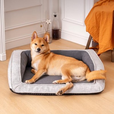 FUNNY FUZZY Plush Retreat Chevron Dog Bed - Comfy Washable Plush Dog Bed for Pets