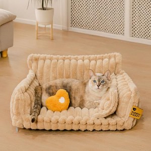 Cute & Unique Design: FUNNY FUZZY dog bed is designed with a unique sofa shape, giving your furry friend an exclusive cozy corner. The three-sided embracing design not only provides your pets with enough security, but also allows them to better relax and rest. The additional pet pillow provides optimal head and neck support to ensure comfort