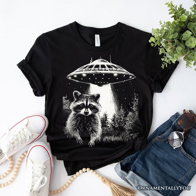 Funny UFO Raccoon T-Shirt, Black Unisex Tee for Alien Enthusiasts| OrnamentallyYou