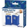 - NOVELTY SHOT GLASS: This great looking set of 2 porta potty shot glasses are shaped like outdoor toilets!