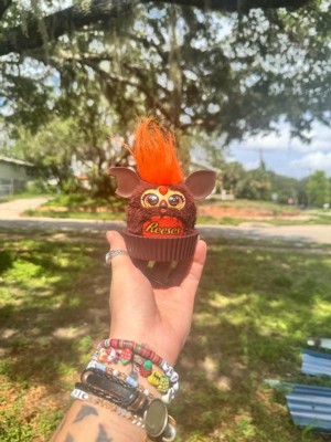 Furby Furblets toys and REESE'S are a perfect pair just like peanut butter and chocolate! Press the different buttons to hear funny eating noises, music, and phrases in the unique Furbish language (they don't speak human languages). This 3 inch mini Furby toy also has wiggly peanut butter cup ears and comes with its very own plastic REESE'S cup that it can sit in to display. When you're looking for some sweet gift ideas, this little buddy is fantastic for kids gifts, Valentine's Day, Easter baskets, or any excuse to treat yo'self! REESE'S trademark and trade dress and the REESE'S Orange Color and Crown Design are used under license. Furby and all related properties are trademarks of Hasbro.