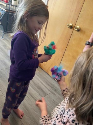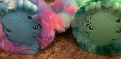 [This review was collected as part of a promotion.] These two Furby Furblets are so cute and colorful. My daughter likes changing them out on her book bag, it has an attachment to connect it to something. They do take batteries but are already in the Furblets. The singing is adorable and the sounds they make are really funny.: My daughter is constantly giggling when she plays with them. The ears are down when it’s asleep, but you have to push a spot on top of the head of them to turn on. The eyes don’t move but you can pretend feed it and it will make noises and talk.