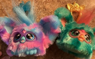 [This review was collected as part of a promotion.] Furby Furblets are just the cutest, you can even sync them together! They sing, make sounds and even say phrases in their own furbish language. You can feed them, pet them and even clip them on your bag for on the go fun.