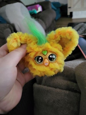 [This review was collected as part of a promotion.] Super cute miniature furby toy! Fits in the palm of your hand. Love how the colors make it look like a little pineapple! The ears fold down over the face, and then you press a button on its head to wake it up. You can press the mouth, heart, and button on top to make it sing, talk, etc. Comes with a keychain attachment to hang off backpack or bag.