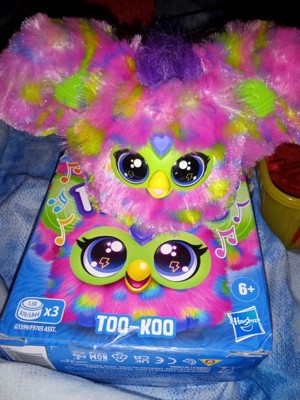 [This review was collected as part of a promotion.] The Furby Furblets Too-Koo is an adorable and vibrant addition to the Furby family. With its pink fur adorned with colorful dots, green faceplate, and blue eyes featuring yellow lightning bolts, Too-Koo stands out with a unique and playful design. This Furblet also comes with a green backpack clip, making it easy to carry around. Too-Koo plays rock-themed music, adding a fun and energetic vibe to its personality.