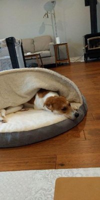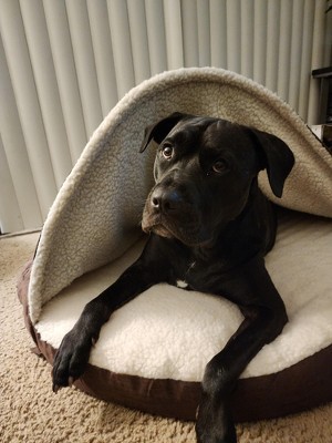 My 20lb French Bulldog loves the Snuggery Burrow Dog bed. She gets cold easily so being able to cover herself in this bed keeps her cozy & warm. The bed is perfect size and the padding is thick so she is comfy for her many naps :)