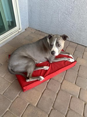 [This review was collected as part of a promotion.] This bed is the BEST dog bed, and I’ve gone through many! I have a 4 year old golden and a 12 week old golden and this bed LASTS. The fabric is tough and has put up with both the puppy and the “still acts like a puppy but is full grown” dogs both digging and chewing and you can’t even tell. It still looks as good as new. It is weather resistant so I’ve been able to put it out on our deck, and they both love to lay on it as it provides comfort since it is 3+ solid inches of memory foam. I will be buying a second for my bigger dog as I originally chose a smaller size for the new puppy but they both want to lay on it!