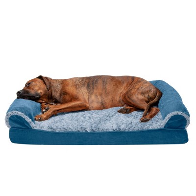 Inviting in form and function, the FurHaven Paw Quilted L-Chaise Pet Bed is designed to provide optimum comfort and support for pets of all ages. The chaise design features L-shaped fluffy bolsters for extra cushion, as well as great orthopedic support for both cats and dogs. The sleep surface features quilted seams that stretches along the bolsters with a clean and fun paw-print quilted design! Pillowy fluff-filled bolsters help support aching joints. The L-shaped design opens up plenty of space to snooze away in the perfect position. Full Support Solid Orthopedic foam base offers our strongest support, the L-shaped bolster helps support the neck, back, hips, and joints. Orthopedic Foam core is manufactured in the USA and independently tested through the CertiPUR-US program to ensure that it meets the standards for content, emissions, and durability. Our beds may be shipped under compression to reduce carbon footprint in shipping; after compression allow up to 48 hours for the foam to expand and regain its original shape. To fluff up compressed bolsters after shipping or for a refresh, gently squeeze and loosen any clumped fill material to improve bolster support. Sizes & Dimensions Available: Medium: 30" x 20" x 6" (3" Base Foam Height); For dogs up to 35 lbs, Large: 36" x 27" x 6.5" (3" Base Foam Height); For dogs up to 55 lbs, Jumbo: 40" x 32" x 8" (4" Base Foam Height); For dogs up to 95 lbs.