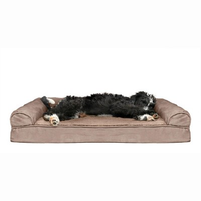 FurHaven Luxe Fur & Performance Linen Cooling Gel Sofa Dog Bed