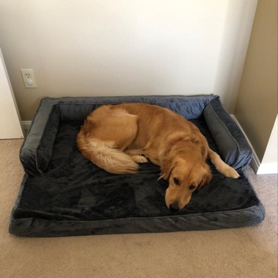 Perfect for cats and dogs of all ages, the FurHaven Comfy Couch pet bed is a short-sided pet sofa that is sure to be your pet's favorite new snuggle spot. The orthopedic mattress features egg-crate foam with a peak and valley design for optimum air flow, circulation, and pressure point relief for your pet. Soft sided velvet walls provide bolstered support on both edges and the back of the bed, allowing your pet to relax into comfort with their back and hips supported. The side bolsters also offer the perfect pillow for your pet to rest its head, allowing for better spinal alignment and neck relief. Bolsters are filled with 100% recycled fluffy fill. With a faux fur sleep surface that is oh-so-soft on noses and paws, you pet will drift off to sleep in comfort. The cover is easily removed and machine washable for your convenience.