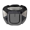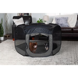 The FurHaven light-weight portable pet playpen allows pets to play in a contained area. The pet playpen keeps your pets safely with you while at the park, beach, and inside or outside your home. Top is fully zippered and removable, and the six side-panels form a circular shape. A large zippered side-panel entrance has a fabric tie-up letting pets easily enter and exit. Easy to clean; just spot-wash with cloth and mild detergent, towel or air dry.