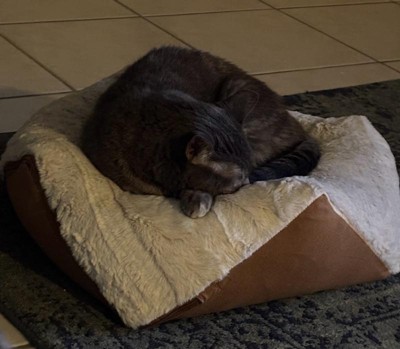 [This review was collected as part of a promotion.] My 2 yr old cat loves this little bed. I put it on my couch and she will take naps in it all the time. It’s very soft and easy to clean. It’s just the right size for her.
