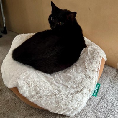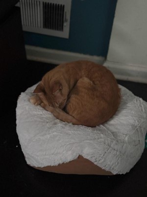 [This review was collected as part of a promotion.] My cat LOVES this bed! It took him a day or two to start sleeping on it but now it’s his go to spot. It has a nice design that matches my house decor. The fur on it is nice and soft. The only thing is I wish it wasn’t white because it may become hard to clean.