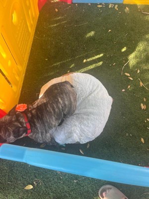 [This review was collected as part of a promotion.] This apparently super comfy according to Dolly! I did think it was going to be a bit larger as I ordered the medium. It has a zip off cover making it easier to care for and clean, so it should also last longer than others. I just know to order an even larger one next time as Dolly is too much of a “big back” even for a medium!