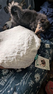[This review was collected as part of a promotion.] First off I love that this bed has a removable cover because my dogs go running out in the back and get filthy and dusty and their beds are normally disgusting within a day or two of being washed so I have to wash them frequently. The shape of this bed is so cute and unique! My mini Aussie has a lot of weird thing she’s does and not sleeping in a dog bed is one of them. Instead she uses them as pillows. She will only put her upper body on one and leaves the rest of her body on the cool floor so this was the perfect size for her. She immediately knew it was for her and climbed up on it to test it out. I moved it by the back door because the sun comes in every morning and she likes to bask so now I can always find her laying her head on her dog bed every morning. Great quality as well for those who have super chewers!