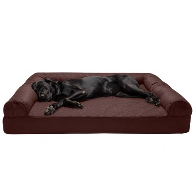 FurHaven Two-Tone Faux Fur & Suede Deluxe Chaise Lounge Cooling Gel Sofa Dog Bed - Medium, Espresso