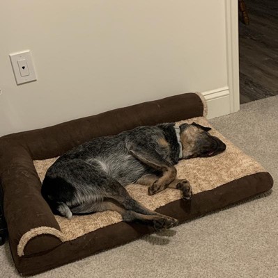 Had 6 different beds so far in less than 2 years of having my fussy heeler and this one is the oldest. Even in its well-loved condition, it is still his favorite. He’s a Velcro dog so it’s hard to get him to use dog beds to begin with, but he clearly loves to call this one his own and will choose it over the couch regularly. Love that it’s washable as a single cover (the bolster is a removable cushion separate from the piece of foam on the bottom.) Mine has stood up to several washes and still goes back together well after whatever shrinking might have occurred. Great bed!!