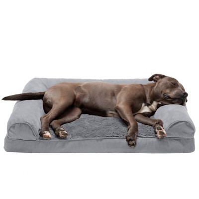 Perfect for pets young and old, the FurHaven Two-Tone Faux Fur & Suede Sofa-Style Orthopedic Pet Bed is designed to provide your loved one with maximum comfort for a good night's rest. With a soft, plush faux fur sleeping surface your dog will be more snug than a bug in a rug! Ultra plush, flecked faux fur provides a snuggly soft sleep surface and trims the edges of the bolster for a chic flair. The two-tone design hides dirt and pet dander better than traditional plush sleep surfaces. The orthopedic ("egg crate") foam base supports your pet's joints and pressure points making this pet bed ideal for arthritic pets who have trouble getting comfortable. Give your companion the luxury they deserve with this orthopedic dog bed. They'll love the suedine bolsters' soft but supportive feel provided on three sides giving them a variety of cozy positions to snuggle into. The bolsters are a great pillow for your pet to lie their head on or, for pets that like to cozy into your couch, they can snuggle close to the sides for a sense of security and warmth. Whatever position your pet likes to lay in, they'll find nothing but comfort and sweet dreams!