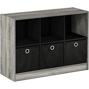 Furinno 3-Cube Bookcase Organizer Storage Book Shelf with 3 Pull-out Bin Drawer