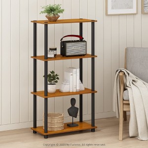 Furinno 4-Tier Ladder Decorative Bookshelf Open Multipurpose Shelf Display Rack Bathroom Kitchen Entryway Storage Shelves,Light Cherry/Black