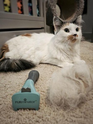 If you live with pets, you live with pet hair. FURminator grooming solutions reduces loose hair from shedding up to 90% with regular use. The FURminator deShedding Tool for medium and large, short-hair cats (over 10 pounds) removes shed hair and helps reduce hairballs for less mess. This tool is specially designed to reach through the topcoat to safely and easily remove loose hair and undercoat without damaging the coat or cutting the skin.* The ergonomic handle makes grooming easy, and the FURejector button releases hair with ease.