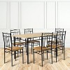 Upgrade your dining experience with our 7-Piece Dining Table Set, where style, comfort, and functionality converge to enhance your home's ambiance and create a space for cherished gatherings.Features:Ample Seating: This dining table set includes a rectangular table and six chairs, making it ideal for accommodating 4-6 people comfortably.Versatile Usage: Suitable for both kitchen and dining room spaces, this set seamlessly blends into various home decors.Elegant Light Brown Finish: The light brown color of the table and chairs adds a touch of elegance and warmth to your dining area.Sturdy Construction: Crafted with durable materials, this set is designed to withstand everyday use and provide long-lasting durability.Easy to Clean: The tabletop and chair seats are easy to wipe clean, making maintenance a breeze.Complete Dining Solution: With the inclusion of both the table and chairs, this 7-piece set provides a comprehensive dining solution for your home.Classic Rectangular Design: The rectangular shape of the table is a timeless design that offers plenty of space for dishes and table settings.Solid Wood Construction: The table and chair frames are made of solid wood, ensuring stability and longevity.Assembly Included: The set comes with all the necessary hardware and instructions for easy assembly, allowing you to enjoy your new dining space without hassle.