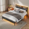 Queen Size Upholstered Platform Bed Frame With LED Lights Charging Station Headboard USB Ports Heavy Duty Support No Box Spring Needed Modern Home