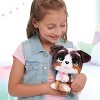 - Walk and Talk: Connect this sweet puppy’s collar to the leash and gently push the Bernedoodle around the house to see its bouncy walk – complete with head wobble and adorable puppy sound effects.