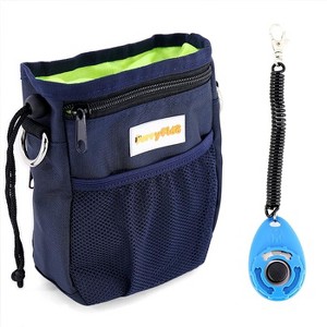 Furry Fido Dog Training Pouch with Waste Bag Dispenser — Ideal for All Your Dog Training Essentials! This spacious pouch (7×5×2.5 inches) securely holds a plethora of dog treats, kibble, toys, and even bones, thanks to its sturdy drawstring closure. It also comes with a complimentary dog training clicker to enhance your pet training sessions.