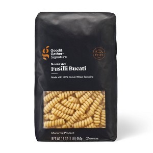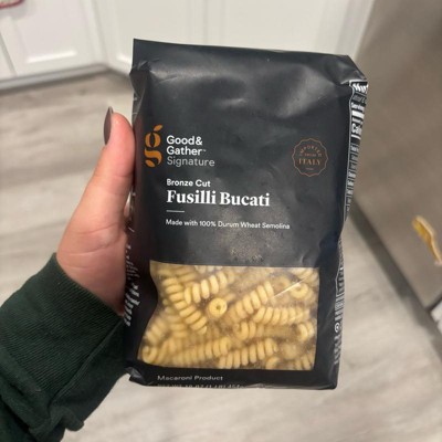 Add a fun new pasta to your rotation with this Fusilli Bucati from Good & Gather™. Made from durum wheat semolina, this fusilli bucati pasta is bronze cut and features no artificial flavors or preservatives. Imported from Italy, it makes a great pairing with creamy lemon sauces, classic marinara, and more.